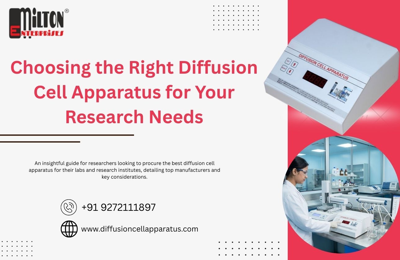 Milton Enterprises, a division of Laboratory Enterprises Manufacturing, offers the reinvented Diffusion Cell Apparatus, widely used to study transdermal properties of pharmaceutical substances. Trusted by pharmacy colleges, medical research institutes, and pharmaceutical industries, this apparatus ensures accurate and reproducible drug diffusion testing.